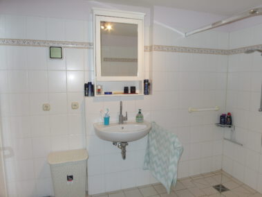 Die sehr großzügig und wohnlich geschnittene Wohnung liegt im Erdgeschoss (mit Fahrstuhl) einer seniorengerechten Wohnanlage inmitten eines kleinen Wohngebietes. Sie verfügt über ein hell gefliestes großes Bad mit bodengleicher Dusche und WC sowie genügend Platz für eine Waschmaschine. Wohnzimmer und Schlafzimmer sind durch die großen Fensterflächen besonders hell und sonnig. Vom Wohnzimmer gelangt man auf die überdachte Loggia, die Platz für Blumen und einen gemütlichen Sitzplatz mit Blick ins Grüne bietet. Die mit einer hellen Einbauküche ausgestattete Küche verfügt über viel Stauraum, man erreicht sie vom Wohnzimmer aus. Alle Fenster sind mit elektrischen Rolläden zusätzlich gesichert.