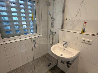 Die zur Vermietung angebotene Terrassenwohnung liegt im Erdgeschoss rechts eines Sechsfamilienhauses und wurde in diesem Jahr komplett von den Eigentümern modernisiert.