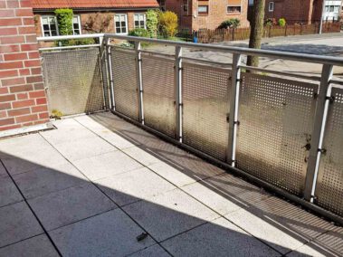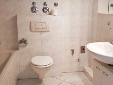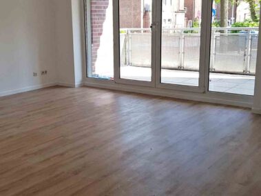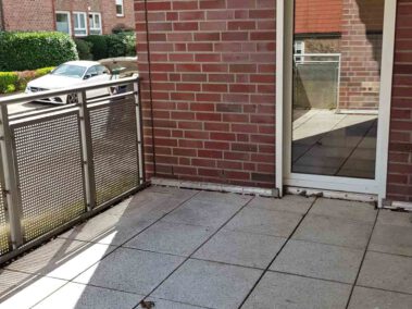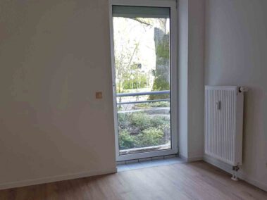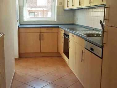 Die großzügige 3-Zimmer-Wohnung befindet sich im Erdgeschoss (Hochparterre) einer gepflegten Eigentumsanlage. Die ruhige Wohnanlage verfügt über einen Fahrstuhl, Trockenkeller und Tiefgarage. Die Wohnung ist mit einer hellen Einbauküche mit Kühlschrank, E-Herd mit Ceranfeld etc. und einem weiß gefliesten Vollbad mit Dusche und Waschmaschinenanschluss ausgestattet. Das Wohnzimmer lässt genügend Platz für einen Wohn- und Essbereich zu. Die Küche ist mit terrakotta-farbigen Fliesen versehen. Der Flur sowie die Wohnräume sind einheitlich mit Vinylboden ausgestattet. Vom Wohnzimmer erreicht man den zur Wohnung gehörenden großen Balkon. Zur Wohnung gehört ein Kellerraum.