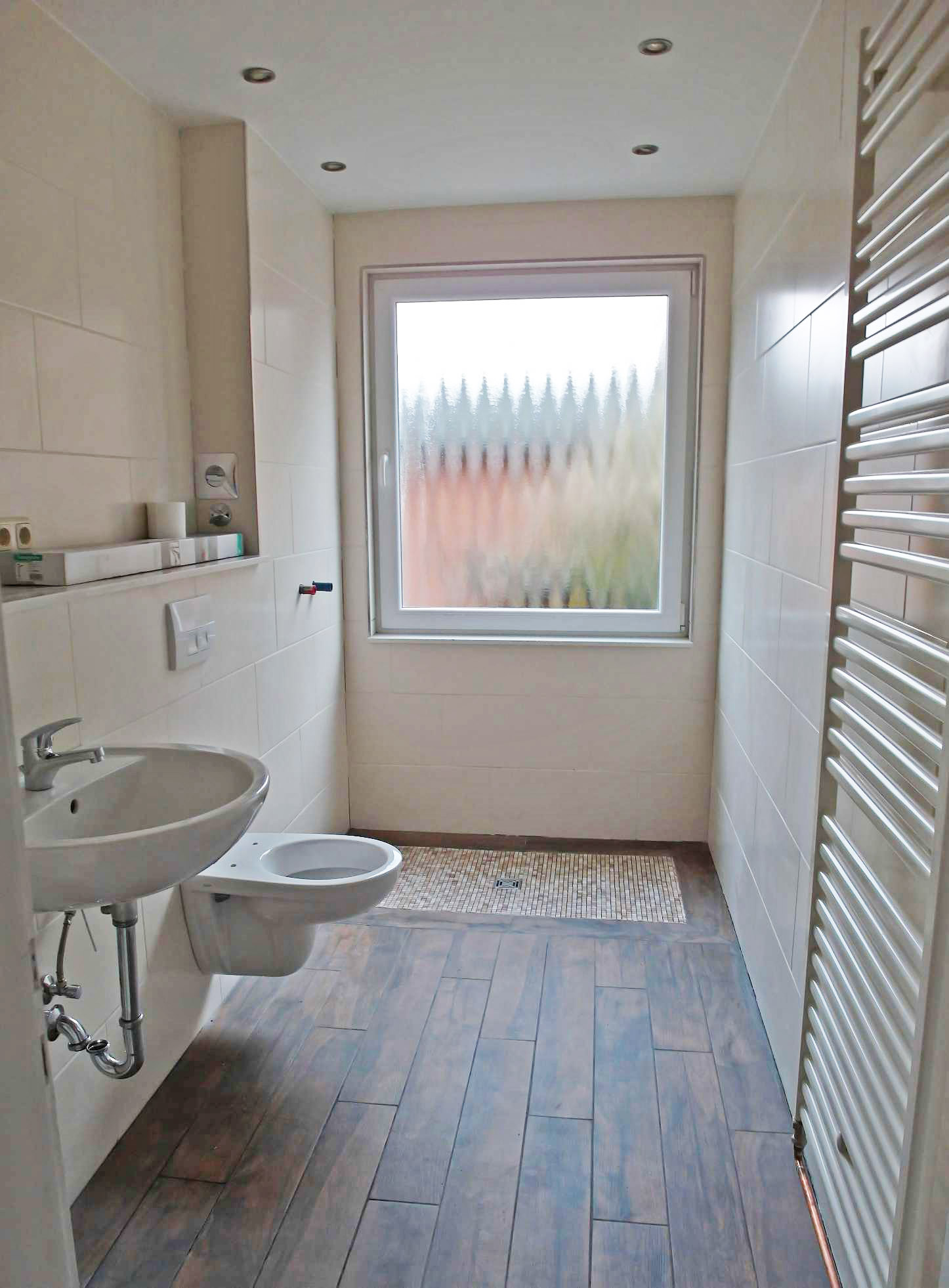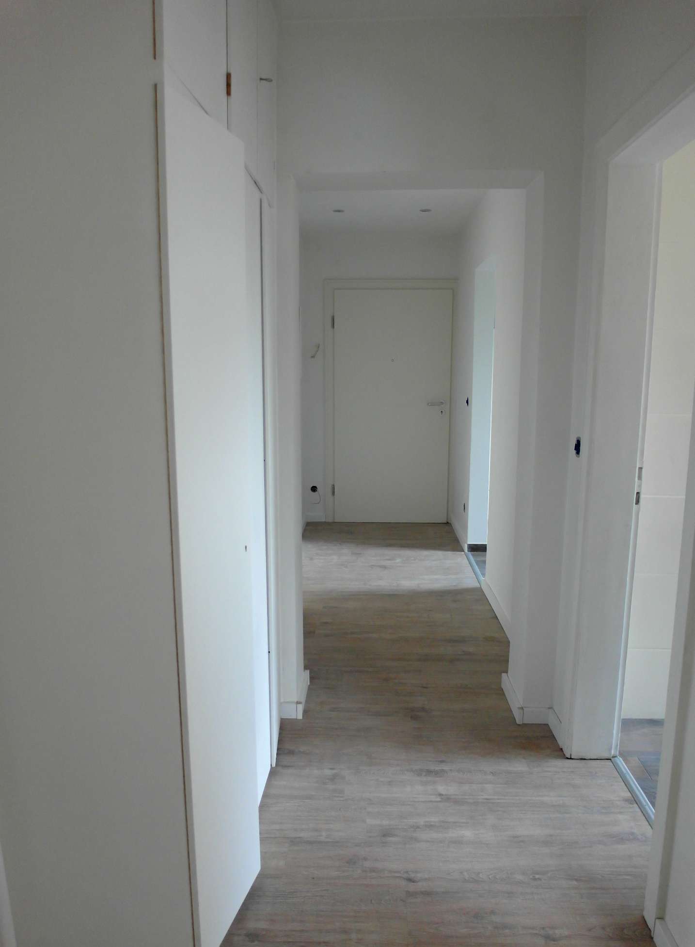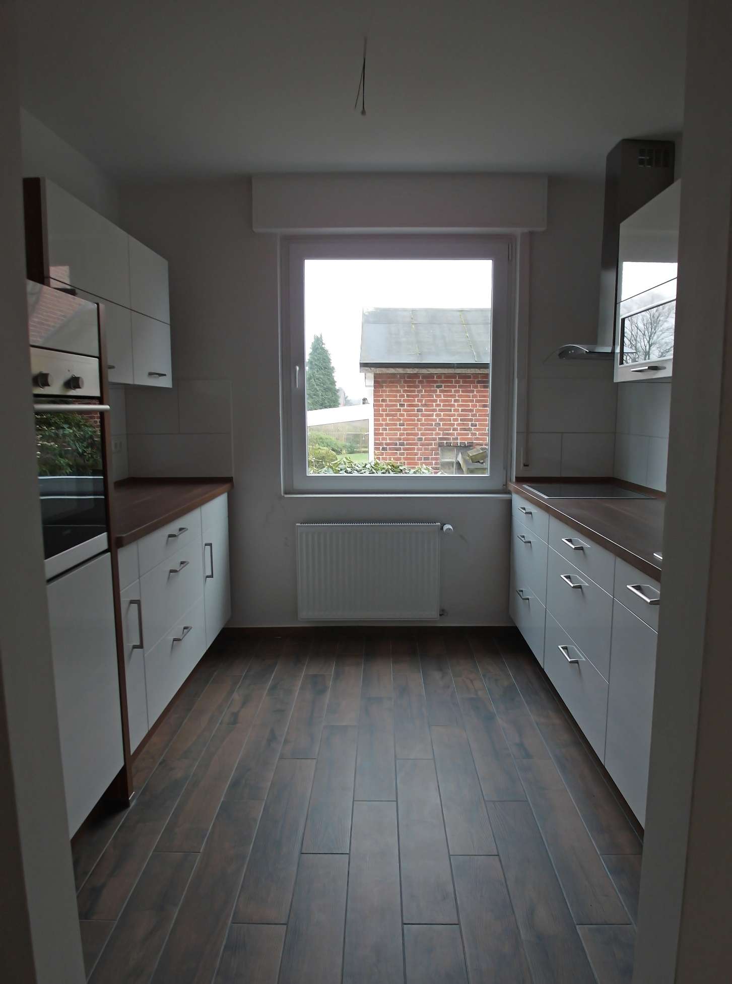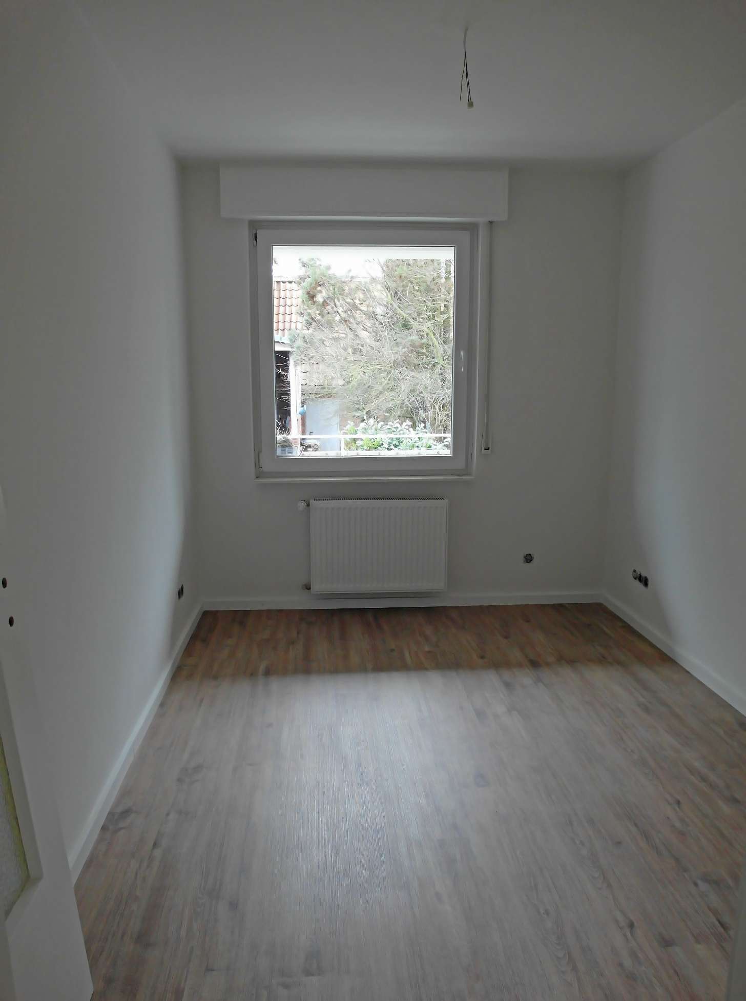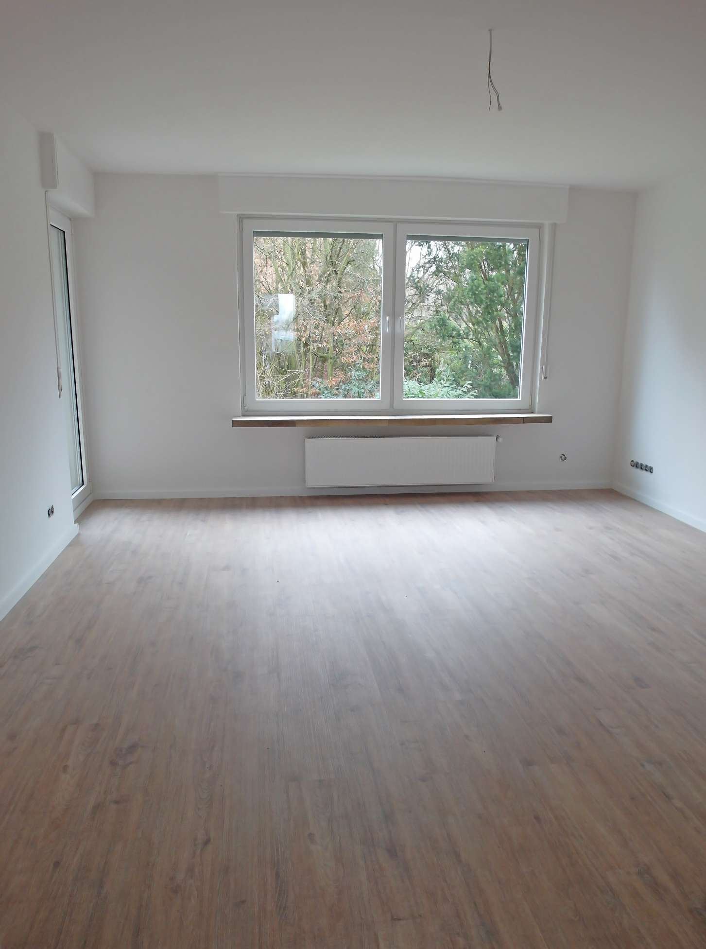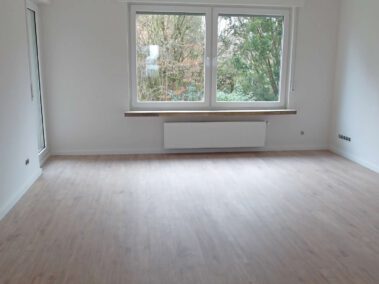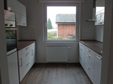 Diese vor Mietbeginn komplett modernisierte Wohnung besticht durch ihre geschmackvolle Ausstattung und den praktischen Grundriss: alle Räume sind vom Flur aus zu erreichen. Die Wohnräume sind einheitlich mit Laminatboden in dunkler Dielenoptik ausgestattet, die Wände sind zeitgemäß glatt geputzt und hell gestrichen. Das großzügig geschnittene und barrierefreie Duschbad (mit Fenster) ist in einem Cremeton gefliest, der Boden im Duschbereich hebt sich durch dunkle Mosaikfliesen geschmackvoll ab. Die Küche ist mit einer modernen hellen Einbauküche ausgestattet und lässt keine Wünsche offen. Vom Wohnzimmer gelangt man auf den großen überdachten Balkon, der im Sommer einen sehr schönen zusätzlichen Platz zum Verweilen bietet.