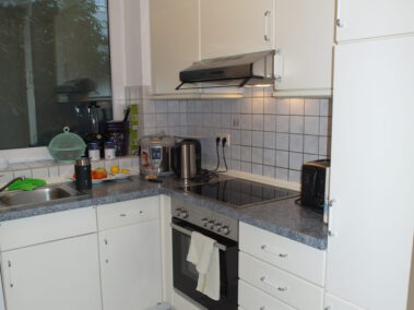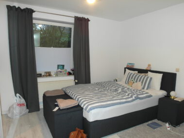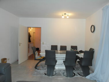 Die angebotene gepflegte Wohnung erstreckt sich über 2 Ebenen: vom Erdgeschoss bis ins Souterrain. In der oberen Ebene befindet sich ein großzügiges Wohnzimmer mit vorgelagerter Terrasse, ein weiteres Zimmer, die Küche und ein Gäste-WC. Im unteren Bereich, den man über eine Wendeltreppe erreicht, liegt ein weiteres Zimmer sowie ein Vollbad mit WC. Die Fußböden in den Wohnräumen sind mit einem hellen modernen Laminatbelag belegt, die Böden in der Küche und in den Sanitärräumen sind hell gefliest. Die Küche ist mit einer weißen Einbauküche mit viel Stauraum für Küchenutensilien ausgestattet. Vom großzügigen Wohnzimmer gelangt man auf die Terrasse, die zum Verweilen einlädt.